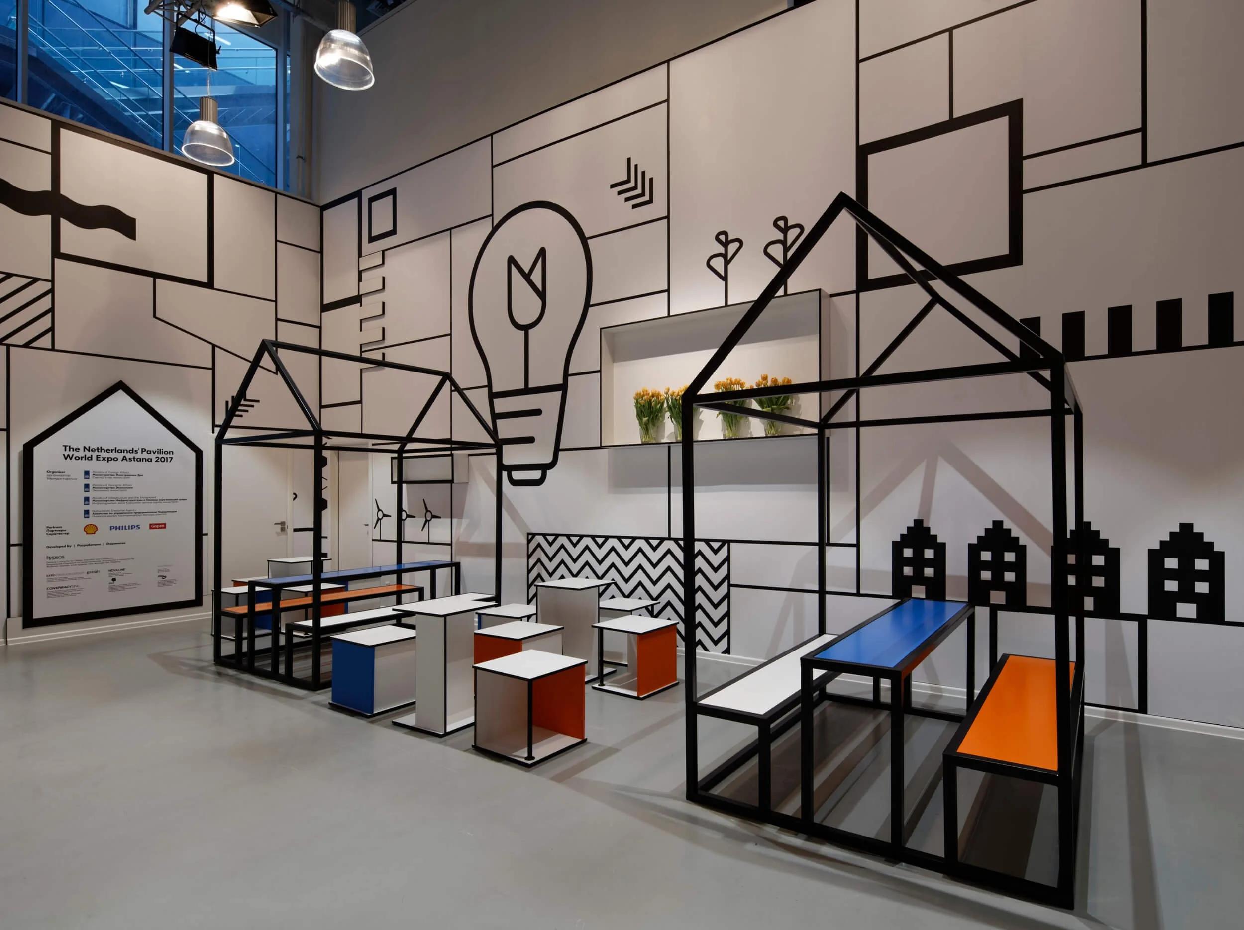 The approach offers the visitor the first striking image of the visual language, reminiscent of Mondriaan and typical Dutch design and Style Icons.