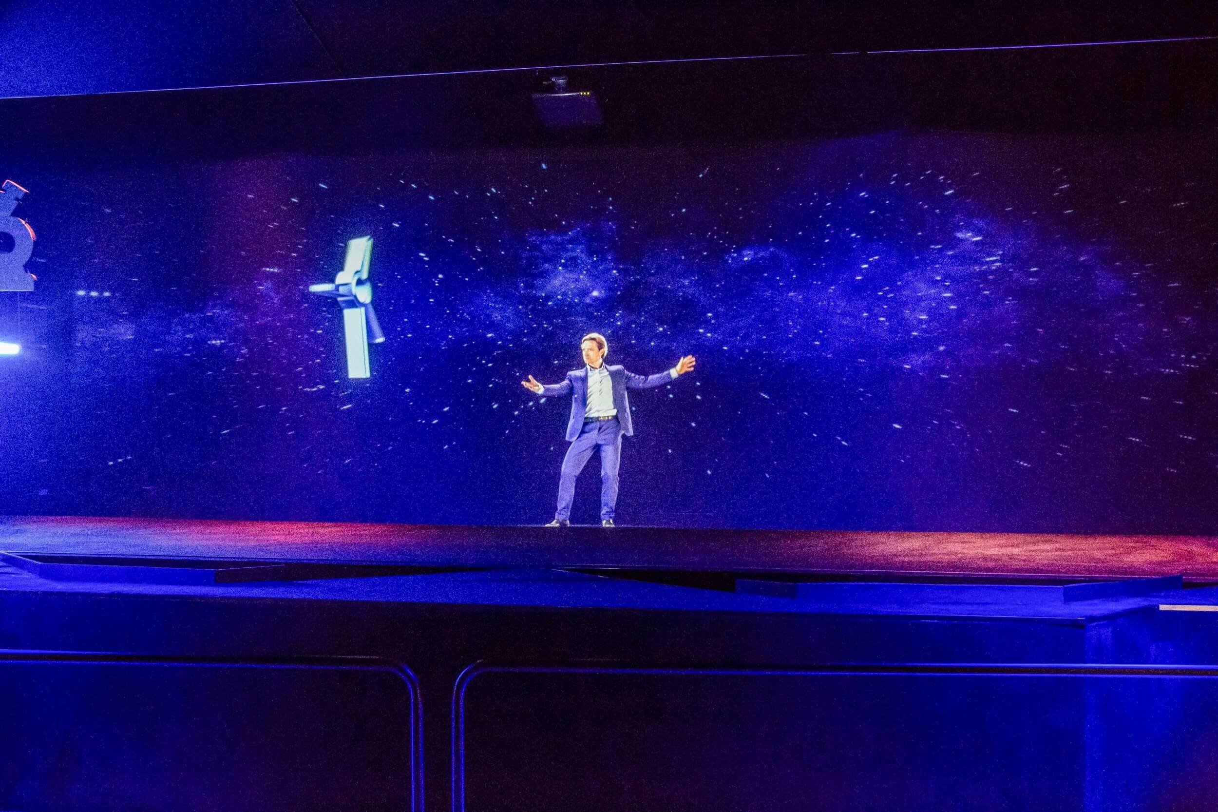 When the show starts, it is here we bring to life the achievements of the pre-show in a memorable immersive 3D holographic media experience. The innovative fabric dismounted to create a multilayered setup.